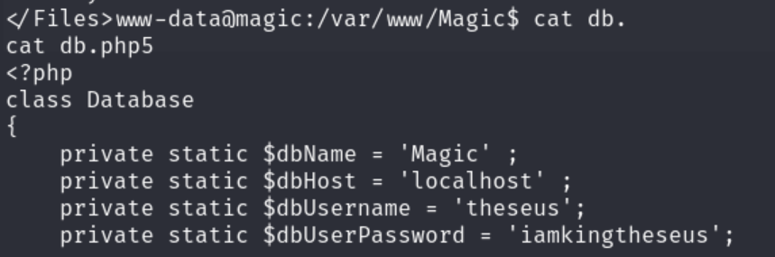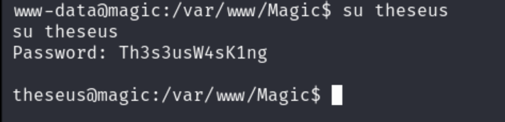 得到数据库cred: theseus/iamkingtheseus 直接su用户看看有没有密码复用