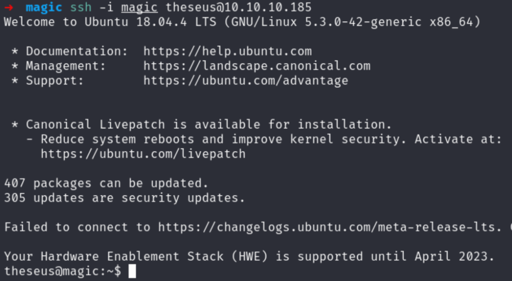 Linux magic 5.3.0-42-generic #34~18.04.1-Ubuntu SMP Fri Feb 28 13:42:26 UTC 2020 x86_64 x86_64 x86_64 GNU/Linux