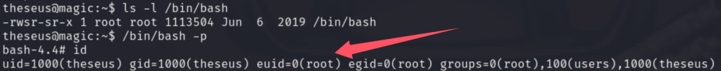 再次运行/bin/sysinfo后查看/bin/bash权限